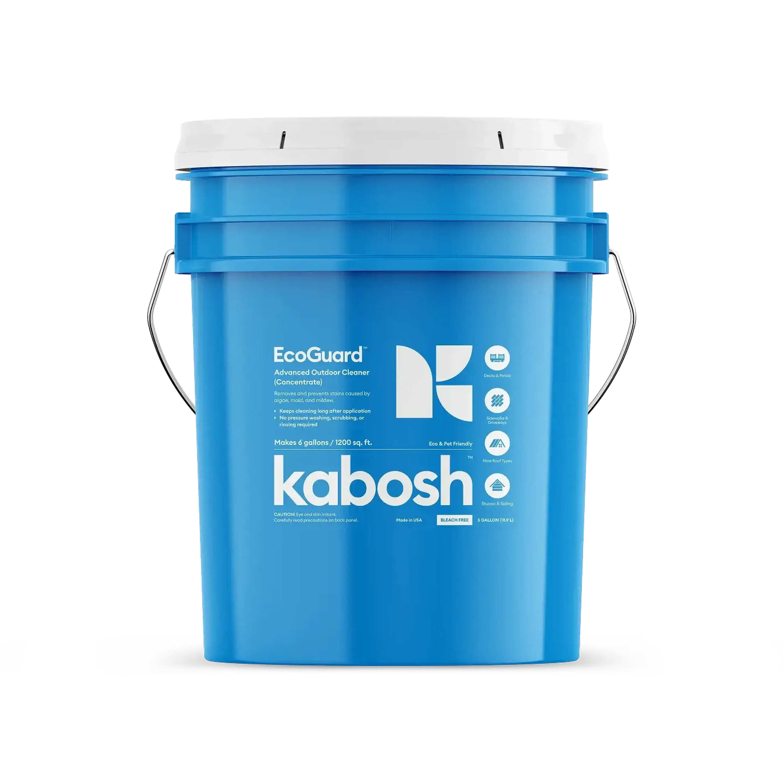 Kabosh Eco Guard is a breakthrough outdoor mold and mildew stain remover that requires no power washing, scrubbing, or rinsing — just spray it on and walk away. It works with the elements to wash away dirt and stains over time, while also helping to prevent new black and green stains from forming for up to a year. Perfect for siding, roofs, decks, concrete, and other outdoor surfaces that need lasting, low-maintenance protection.