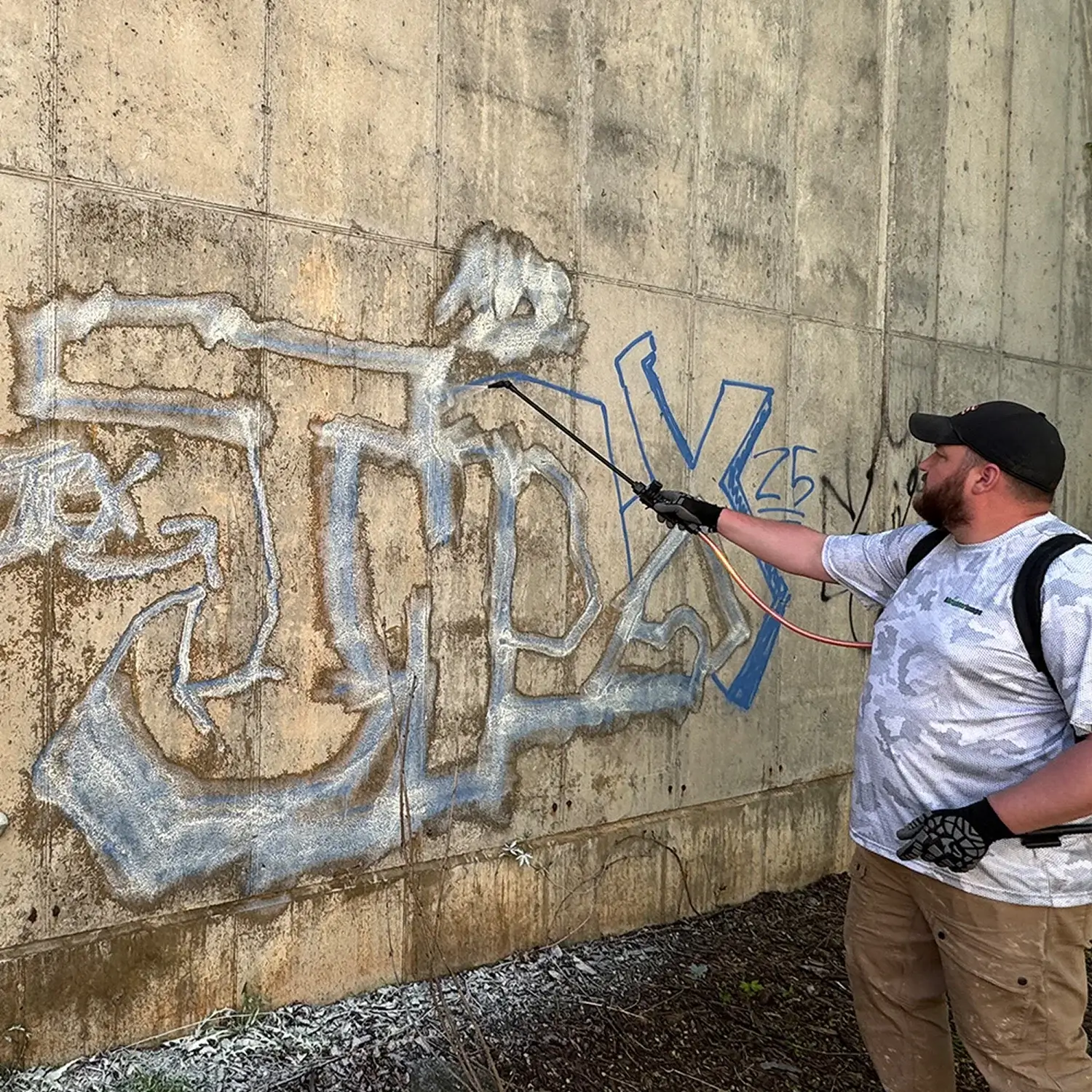 - Let sit, but agitation can help loosen stubborn graffiti. Then rinse thoroughly with clean water (a pressure washer is recommended).